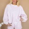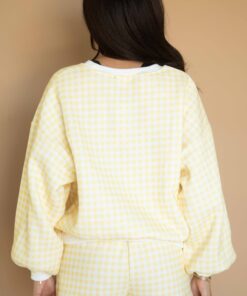 Need the perfect transitional set for winter to spring? You need the Check to it Gingham Set! This two piece loungewear set features a boxy, oversized crewneck sweatshirt with pull on, elastic waist shorts (with pockets of course). This set is mid-weight and fleece lined – making it perfect for those cooler spring days.