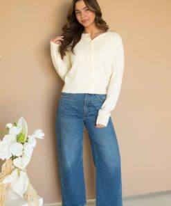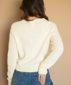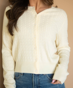 Lightweight, cozy, and classic. This cream-colored cable knit button-front cardigan offers timeless style with a soft, breathable feel. Perfect for layering over tees, blouses, or dresses for crisp fall days and effortlessly chic seasonal outfits.