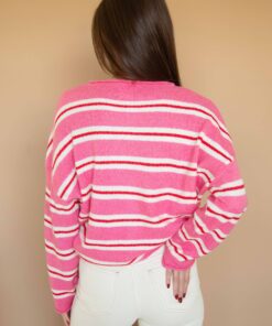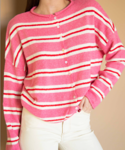 The layer your spring outfits have been waiting for. This lightweight cardigan features an oversized, boxy fit with relaxed drop shoulders and long sleeves for that effortlessly cool silhouette. Soft rolled hems add a laid-back finish, while the pink and red stripe gives it the perfect pop of color. Throw it on over tees, tanks, or dresses for an easy statement layer you’ll reach for on repeat.